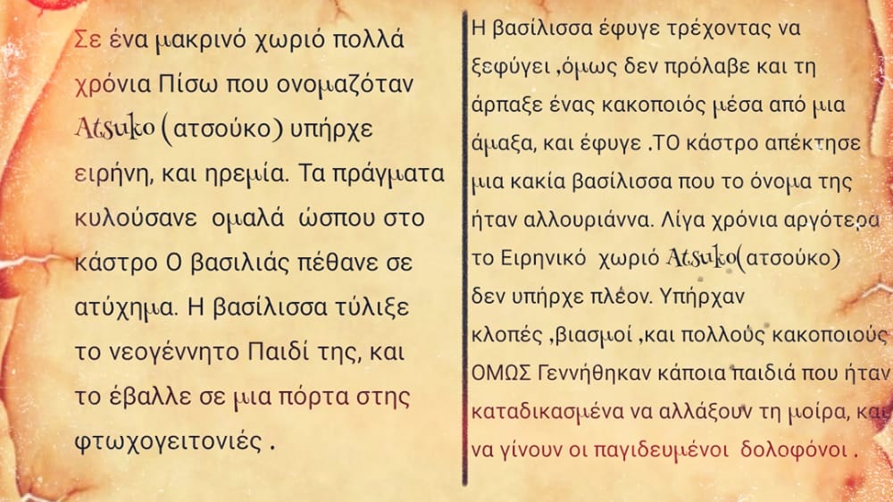 Παρακάτω θα δείτε μερικούς χαρακτήρες μου που είναι ο kaage με το σπαθί πρωταγωνιστής του βιβλίου μου , Ο Ito κακοποιός αλεπού , η Alluriana μια κακία βασίλισσά καθισμένοι στο θρόνο και τη πρωταγωνίστρια kaiyo που όπλα της είναι ένα πιστόλι και ένα μαστίγιο